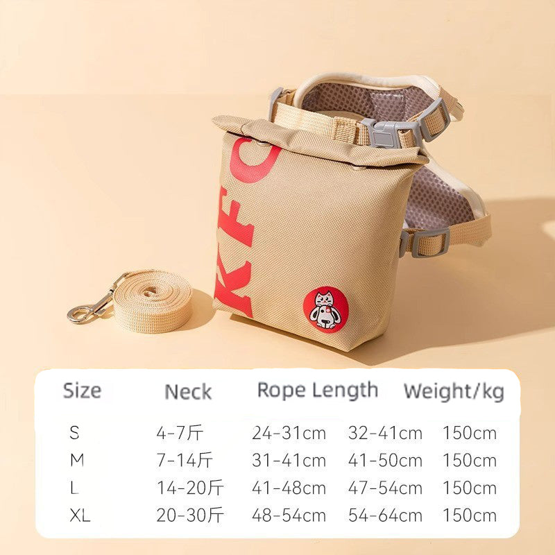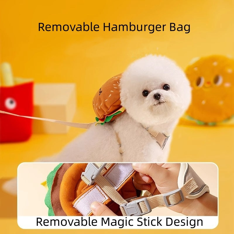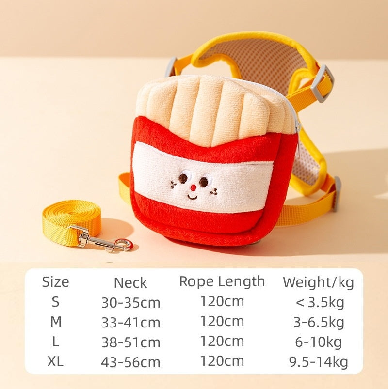Cartoon Hamburger Chips Design Adjustable Vest Leash Rope For Cats And Dogs Walking Tow Rope With Backpack Escape Proof Vest